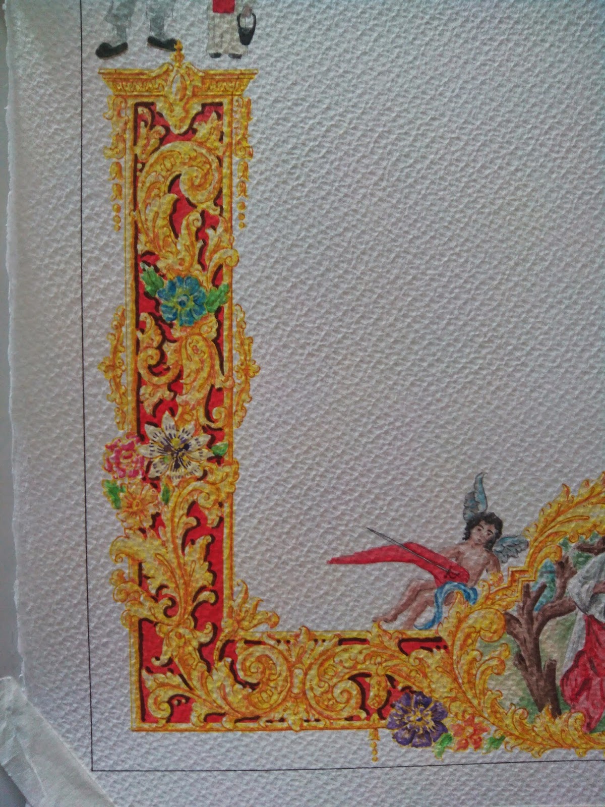 Esta Orla se ha realizado para Convocatoria de Cultos de la Hermandad de la Amargura de la Ciudad de Jaén a petición de D. Miguel Ángel Gutiérrez Delgado, el cual aportó la idea para toda la simbología que se plasma en la obra.
